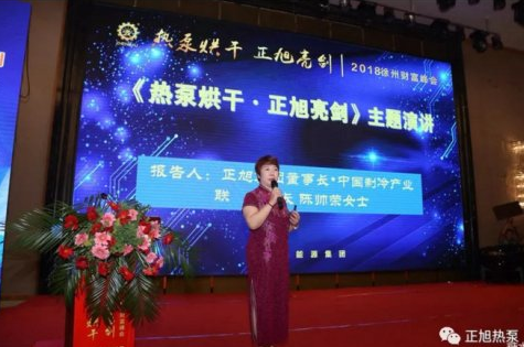 正旭集团董事长、中国制冷产业联盟会长陈帅荣女士分享《热泵烘干·正旭亮剑》主题演讲,从正旭公司介绍、正旭创始股东、正旭产品定位、正旭市场战略、正旭品牌选择和正旭商业模式进行了阐述。