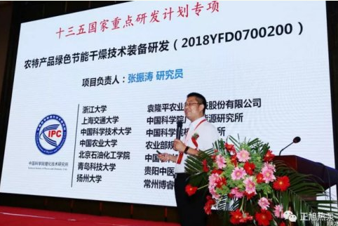 中国科学院理化技术研究所研究员、博士生导师、中国“农特产品绿色节能干燥技术装备研发”首席科学家张振涛博士分享《十三五热泵干燥研究规划》演讲。从农特产品干燥跨尺度数值模拟技术、干燥特性与品质转变影响机理、干燥工艺调控方法与技术等方面,探索热泵烘干的可行性。