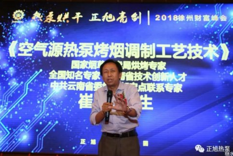 国家烟草专卖局烘烤专家、全国知名专家、云南省技术创新人才、中共云南省委组织部定点联系专家崔国民先生分享《空气源热泵烤烟调制工艺技术》演讲。目前,我国烟草普遍采用传统的土烤房进行烘烤,容量小、能耗高、环境污染严重、操作程序多、不易控制,受环境因素影响较大,烘烤质量很难提高。烘干热泵供热自控烤房与燃油、燃煤供热自控烤房相比,烤后烟叶内在质量提供中上等烟比例大致相当,但以热泵供热烤房成本最低,千克烟总成本仅为二者的44.0 %和73.9 %。因此增加了烟户的净收入,每亩烟可提高产值80─100 元。