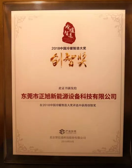 据正旭董事长陈帅荣表示,此次获得“创智奖”,衷心感谢主办方产业在线提供的平台与各级领导、专家、同行及上下游合作伙伴、行业媒体给予高度的评价与肯定。《冷暖智造·新生态》新起点,正旭人应团结奋进,不忘初心与使命,虽任重而道远定要脚踏实地、抬头实干,创优、创变、创新,与时俱进,开拓发展。同时,正旭新能源积极响应产业在线号召,打造空气能热泵产业榜样精神和勇于进取、探索创新的品格风貌,引领产业绿色制造趋势,弘扬企业优异的市场表现和科技创新能力。
