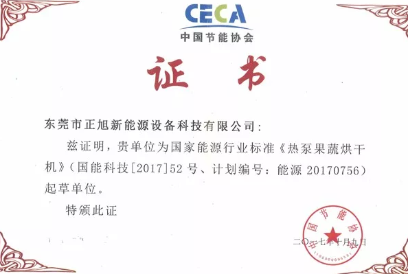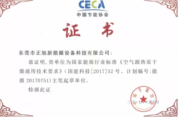 值得一提的是,2017年9月1日,根据“国家能源局2017能源领域行业标准制(修)订计划(国能科技【2017】52号)”,由中国节能协会热泵专委会、中国热泵产业联盟组织有关单位和专家在北京召开了“2017七项空气源热泵国家能源行业标准启动会”。期间,正旭获《空气源热泵干燥通用技术要求》主笔起草单位和《空气源热泵果蔬干燥机》起草单位。