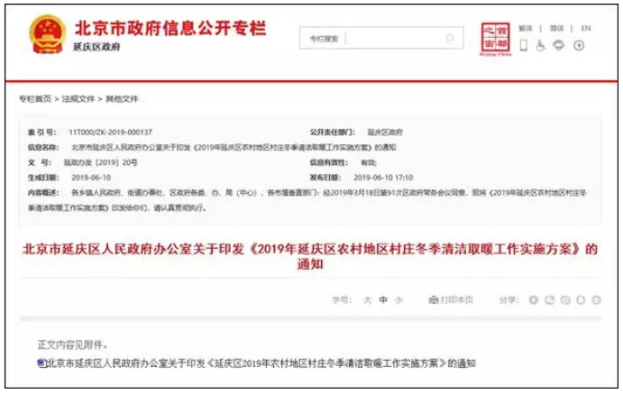2019年延庆区农村地区村庄冬季清洁取暖工作实施方案