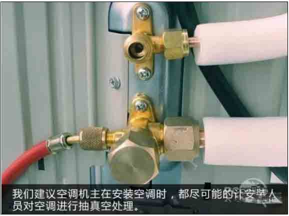 另外,R410A的机器由于系统制冷剂标量要求精确,安装时必须进行抽真空操作。