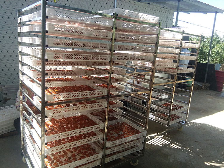 据该项目客户介绍,原来采用自然晾晒的方式,需要安排15~20个工人,工作周期约1个月,成本在10万元左右。按照90吨的鲜品产量计算,自然烘干过程中由于发霉腐烂需要扔掉约45吨,杏子干鲜比按照4∶1计算,每一年的干品数量约11.2吨。晾晒后的杏干售价按照17元/公斤计算,总的销售额为19万,除去人工成本,种植户的收益约为9万元。