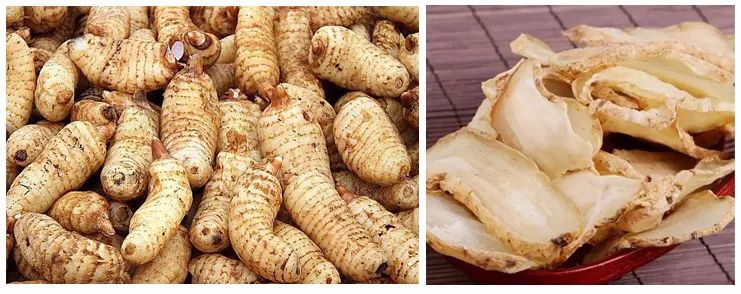 2、蒸制:笼蒸将洗净的天麻入笼蒸熟。一般做法是:大火将水烧开后,先放入个头最大的天麻,大火蒸约5—6分钟后,再放入次大个头的天麻继续蒸,5—6分钟后放入个头稍小的天麻,再蒸约5—6分钟,最后放入小天麻,再蒸约5—6分钟后,一般可全部蒸熟。蒸制过程中应注意:每放入一屉生麻时,须将原笼屉抬起,把新笼屉置于最下层。检查蒸熟度以熟透、无硬心为准;