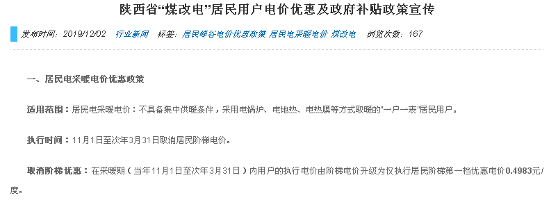当然,考虑到陕西、山东、河北等不同地区都有不同的阶梯电价,同时还有不同省市煤改电补贴政策优惠,以陕西省为例,煤改电阶梯电价调整如下(仅供参考):
