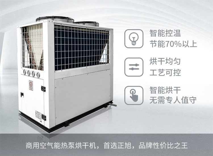 3.当梅菜水分蒸发率达到50%-60%时,梅菜内部水分扩散速度变缓,此时正旭烘干机提供的空气能一部分用来进一步蒸发水分,另一部分用来加热半干的梅菜,当梅菜本身含水量降低到15%时,可以停止烘干,此时干燥完成,整个干燥过程耗费8-15个小时。