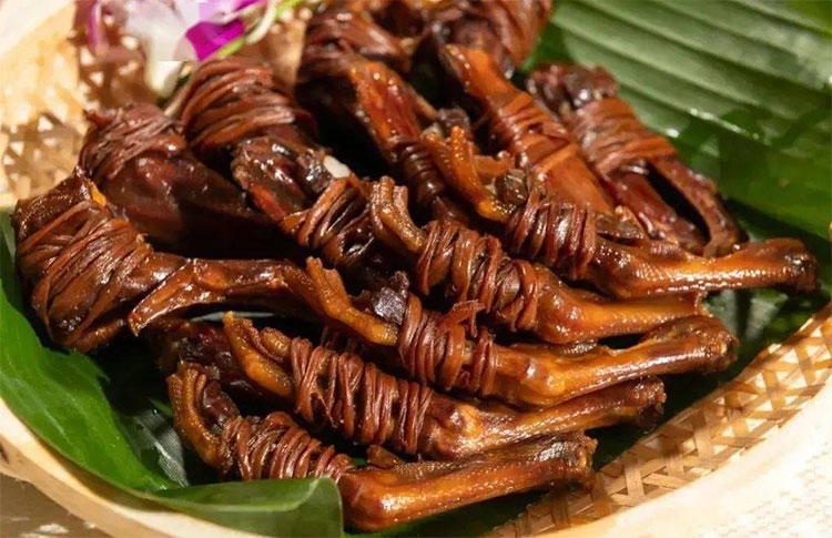鸭扎包是一种极具地方特色的传统小吃,鸭扎包的制作历史源远流长,传闻已有一百年之久。鸭扎包是一种统称,是用腌制好的鸭肠,鸭脚,鸭肝和肥腊肉捆扎在一起制成。每年秋冬腊味飘香,是制作售卖鸭扎包的好季节。鸭扎包扬名在广东珠海以及港澳地区,但由于制作工艺复杂繁冗,生产规模难以提升,导致市场供不应求。下面就为大家介绍一下鸭扎包的制作方法。